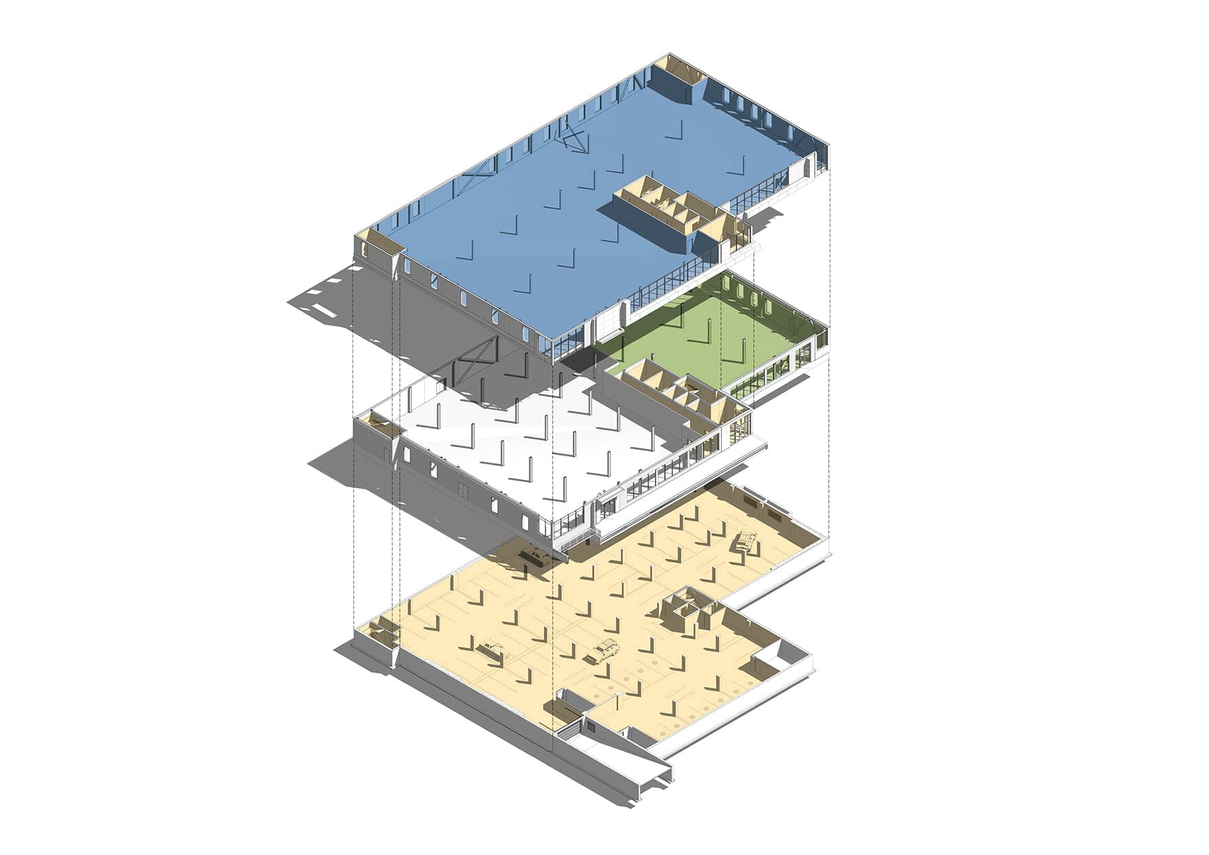 Superficies modulables de plus de 9 000 pi² au rez-de-chaussée et plus de 20 000 pi² à l’étage.