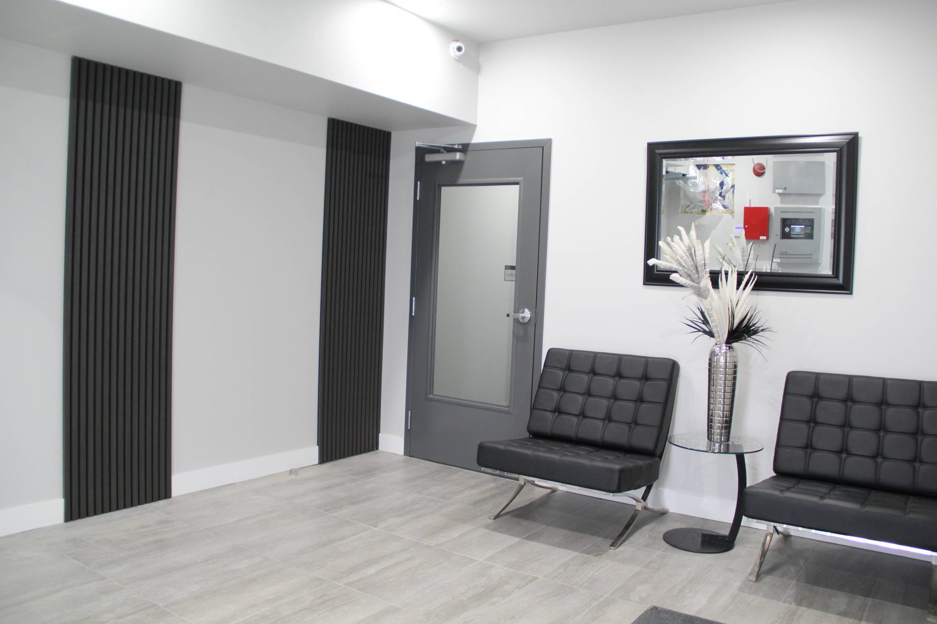 Secure building with cameras, fire alarm system, intercom, and magnetic chip, ensuring your safety.